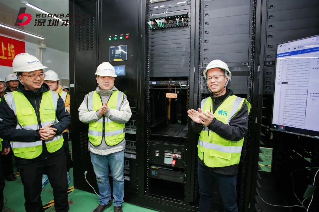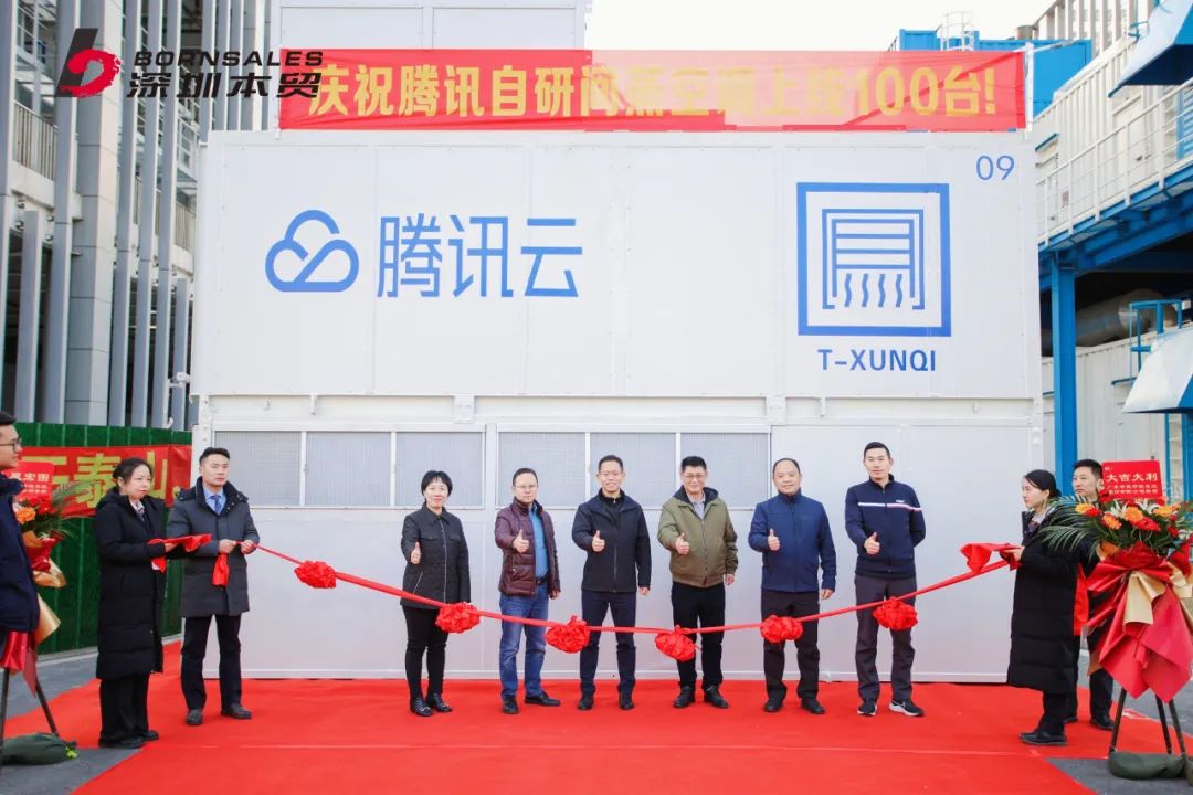 當天的慶典開始之前,參加活動的騰訊和項目承建方、供應(yīng)商代表先到項目施工現(xiàn)場參觀,實地查看項目的施工和AHU的安裝等情況,并現(xiàn)場舉行騰訊自研T-BOX第1001臺上架儀式。